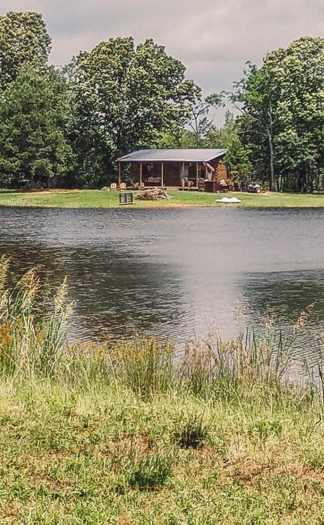 This spacious cabin is situated on an oversized private pond, complete with wrap-around porch and a dock overhanging the water. The rental has two bedrooms, one and a half bathrooms, a large sitting room and separate kitchen, all of which are thoughtfully adorned in equestrian and western decor; the shoulder mount taxidermy pieces in the main living room were of particular interest and really stole the show!