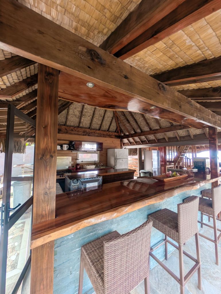Everything is connected by covered walkways, which I didn’t realise how much I would appreciate until a tropical storm rolled through. Instead of beach hopping, we made a pit stop at the local mini market, grabbed supplies, and ended up cooking a feast in the outdoor kitchen while the rain poured down. We stayed dry, full, and slightly smug.